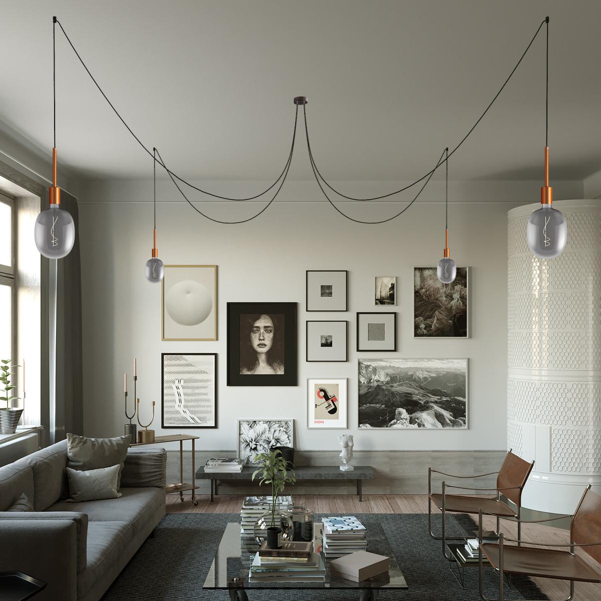 Lampenfassung: 4. Tropfen : 1X [KBM4011RASTERM5] Zylindrisches E27-Lampenfassungs-Kit aus Metall mit 15 cm Kabelklemme - Finish: Brushed copper